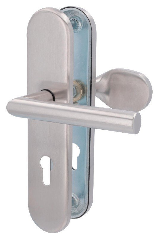 Komplet klamek z długim szyldem z satynowanej stali nierdzewnej z solidną stalową konstrukcją wewnętrzną: