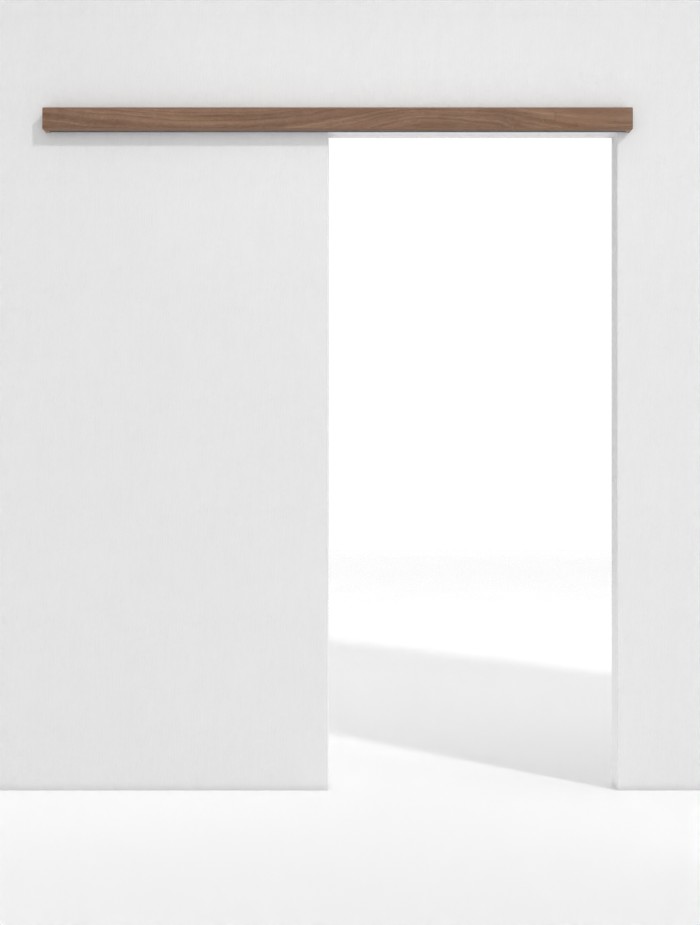 Dzięki skrzynce maskującej przed szyną jezdną możliwe jest nowoczesne koncepcja przestrzeni mieszkalnej. Drzwi można łatwo przesunąć na bok, co zapewnia dobrą dostępność. Powierzchnia CPL (High Pressure Surface) w orzechu Noce sprawia, że system jest wytrzymały.