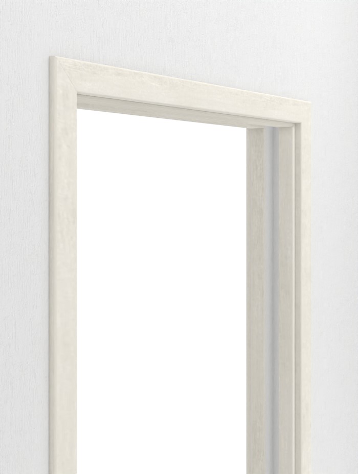 Wytrzymały system drzwi przesuwnych w białym piniowym wykończeniu od Westag, przeznaczony do drzwi przesuwnych i montowany w ścianie: