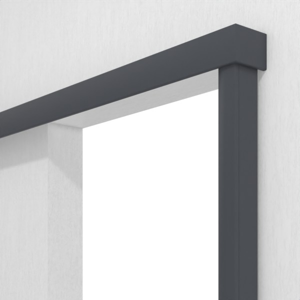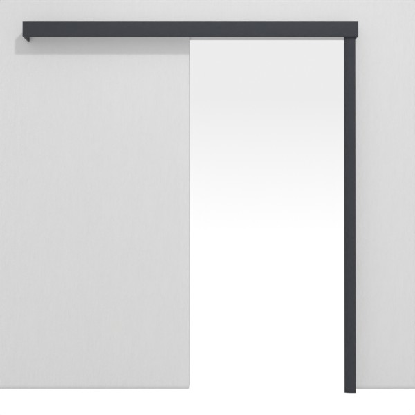 System drzwi przesuwnych przed ścianą w kolorze grafitowym podobnym do RAL 7024 od Classen, które zapewnia więcej przestrzeni i otwarte wnętrze: