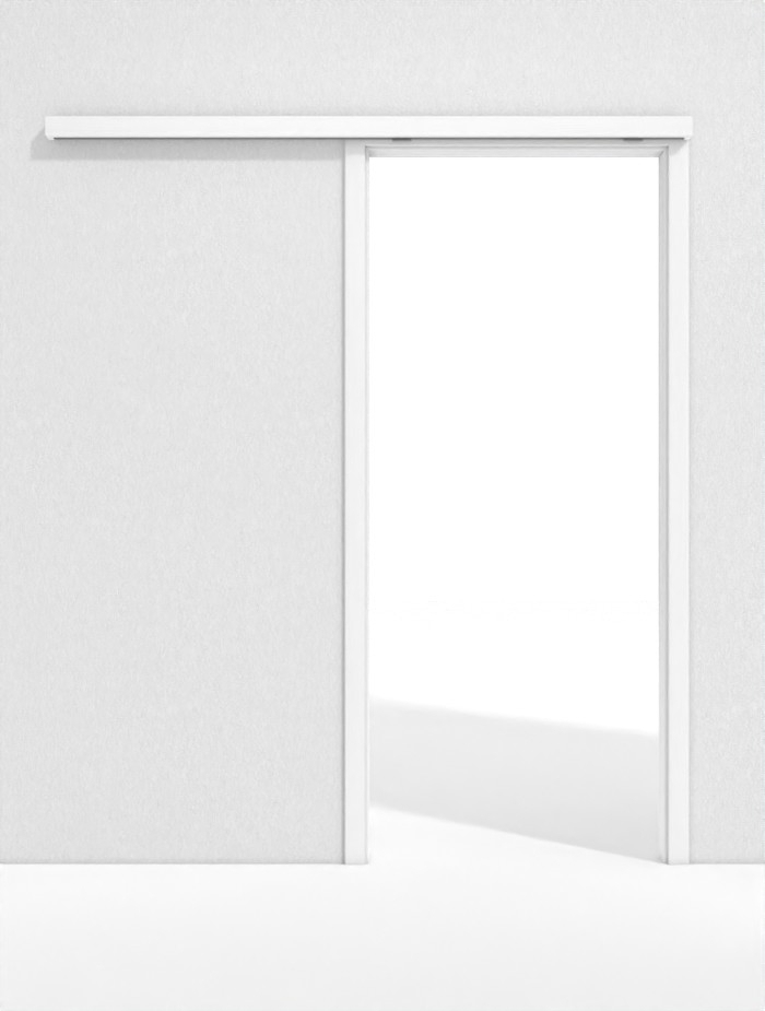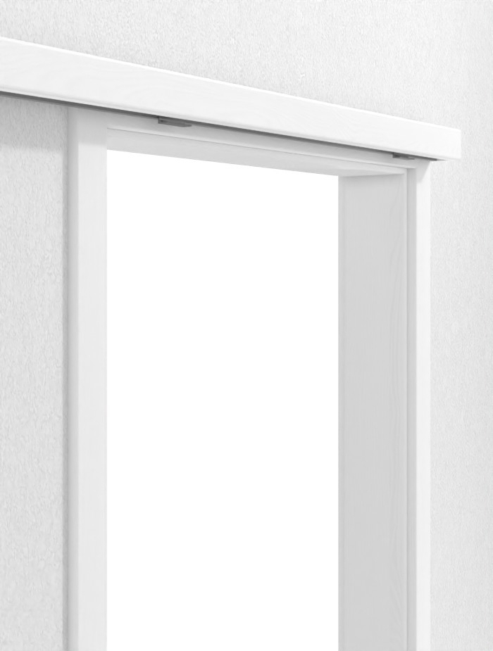 Dzięki skrzynce maskującej przed szyną jezdną i stabilnej ościeżnicy drzwiowej możliwe jest nowoczesne koncepcja mieszkalna. Drzwi można łatwo przesunąć na bok, co zapewnia dobrą dostępność. Powierzchnia CPL (powierzchnia wysokociśnieniowa) w Esche Arctic Weiß ESR 222 PortaLit sprawia, że ościeżnica jest wytrzymała.