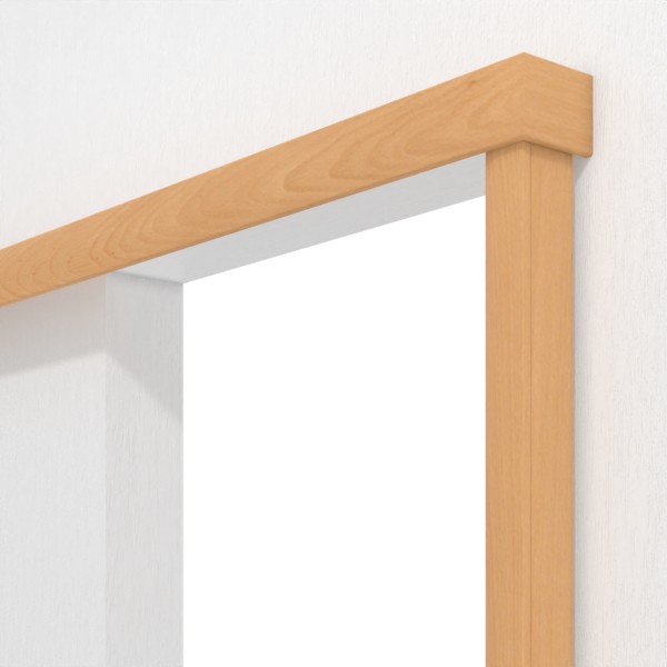 Oszczędzający miejsce system drzwi przesuwnych montowany przed ścianą w kolorze bukowym, który oferuje większe możliwości aranżacyjne: