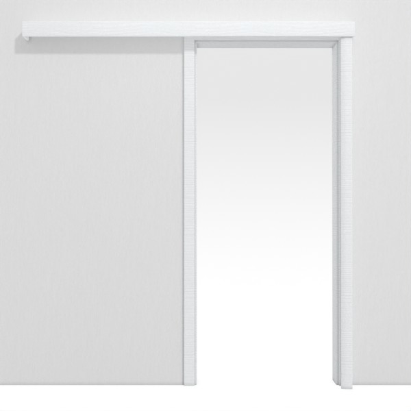 Aby uzyskać więcej miejsca w pomieszczeniu: System drzwi przesuwnych w kolorze białym ze strukturą firmy Classen, biegnący przed ścianą, zapewnia większą swobodę aranżacji.