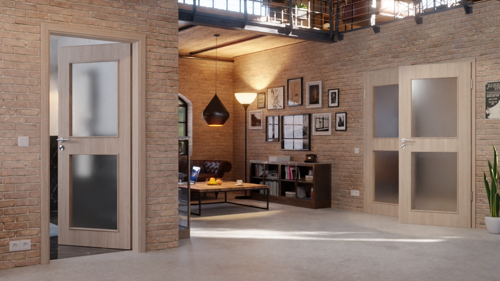Oba równej wielkości okna świetlne są wyśrodkowane i stanowią centralny punkt drzwi. Wpuszczają dużo światła do pomieszczenia, tworząc pozytywną atmosferę.