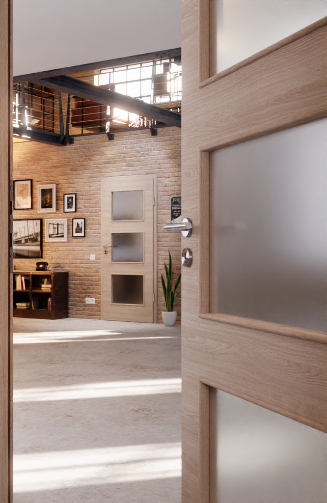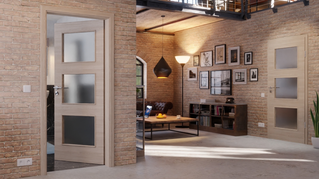 Trzy prostokątne przeszklenia rozciągają się niemal na całej powierzchni skrzydła drzwi. Dzięki temu wpada dużo światła, co przyczynia się do harmonijnej ogólnej atmosfery.