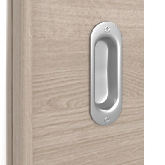 Trwałe drzwi przesuwne ProLine w szarym dębie poziomym z pełną płytą, która zapewnia stabilność: