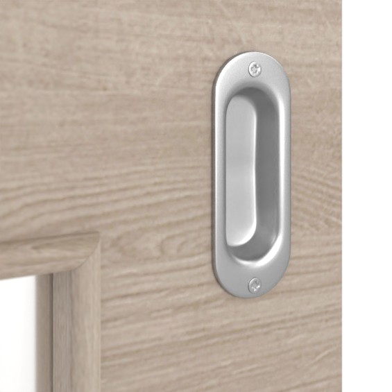 Cztery prostokątne okna świetlne nie tylko wpuszczają dużo światła, ale także ozdabiają skrzydło drzwi przesuwanych w przyjemny sposób.