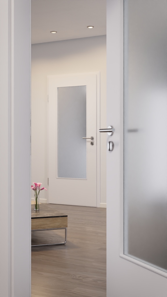 Dzięki przeszkleniu tych drzwi uzyskuje się otwartą atmosferę mieszkalną. Dzięki wysokiej odporności powłoki CPL model jest przystosowany do codziennego użytku. Inne pozytywne cechy to odporność na zarysowania i łatwość w pielęgnacji.