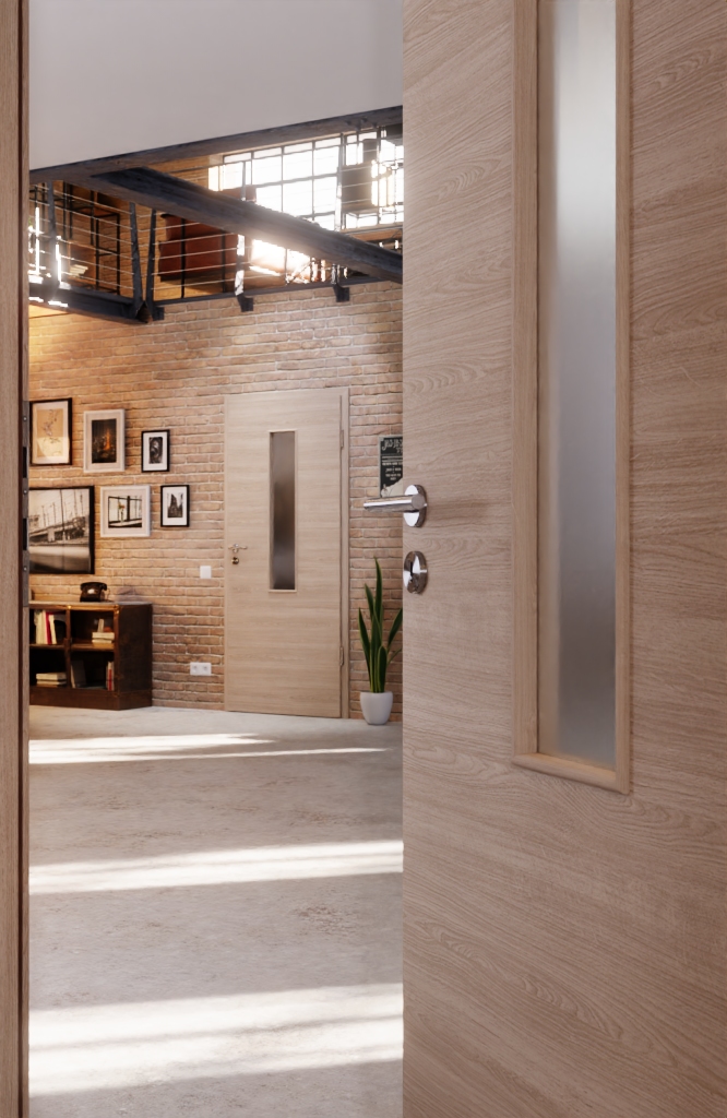 Wąski przeszklenie w środku skrzydła drzwiowego to interesujący element przyciągający wzrok. Dodatkowo wpuszcza światło do Twojego pomieszczenia.