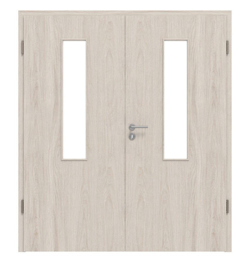 Trwałe drzwi podwójne ProLine w szczotkowanej soli dębowej z stabilną płytą wiórową i trzema zawiasami: