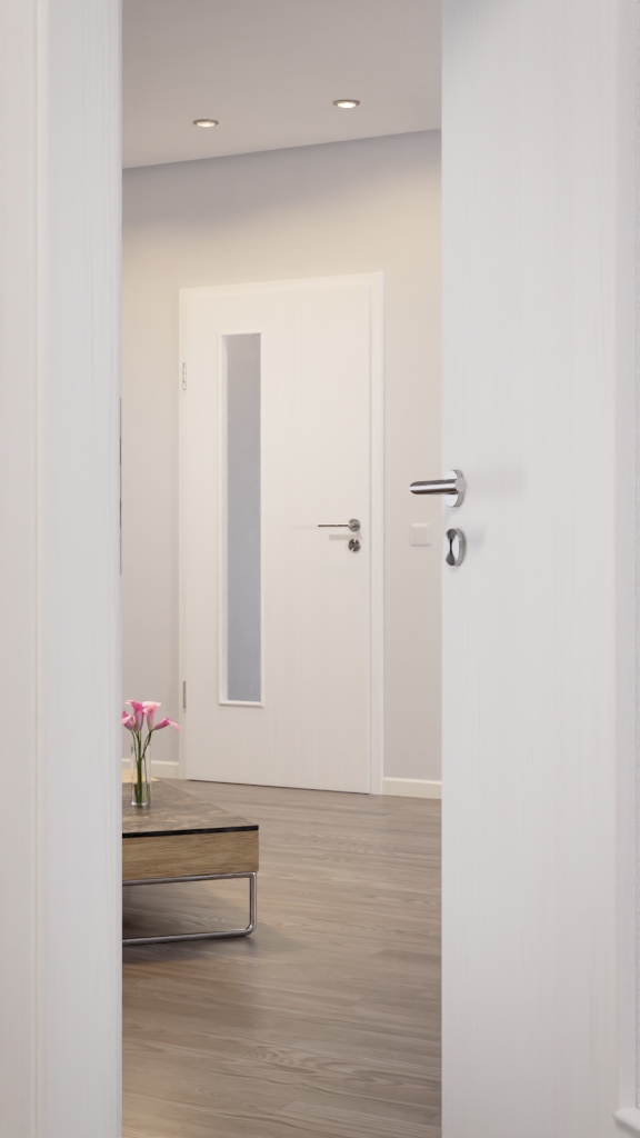 Ponadczasowa elegancja: Drzwi wewnętrzne ProLine LA 24 z zawiasami w białym szczotkowanym wykończeniu od renomowanego producenta Hörmann zapewniają doskonałą harmonię w Twoim domu.