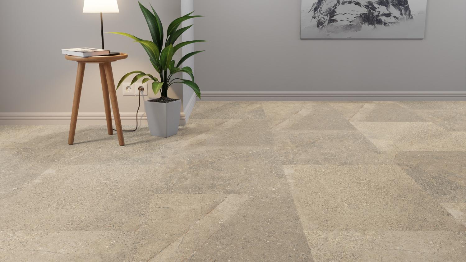 Wysokiej jakości podłoga dekoracyjna z beżową powierzchnią sedymentacyjną