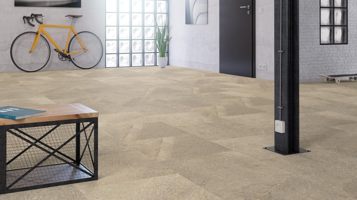 Podłoga jest całkowicie przyklejona do podłoża. Nasza rada: Układanie należy powierzyć fachowcowi.