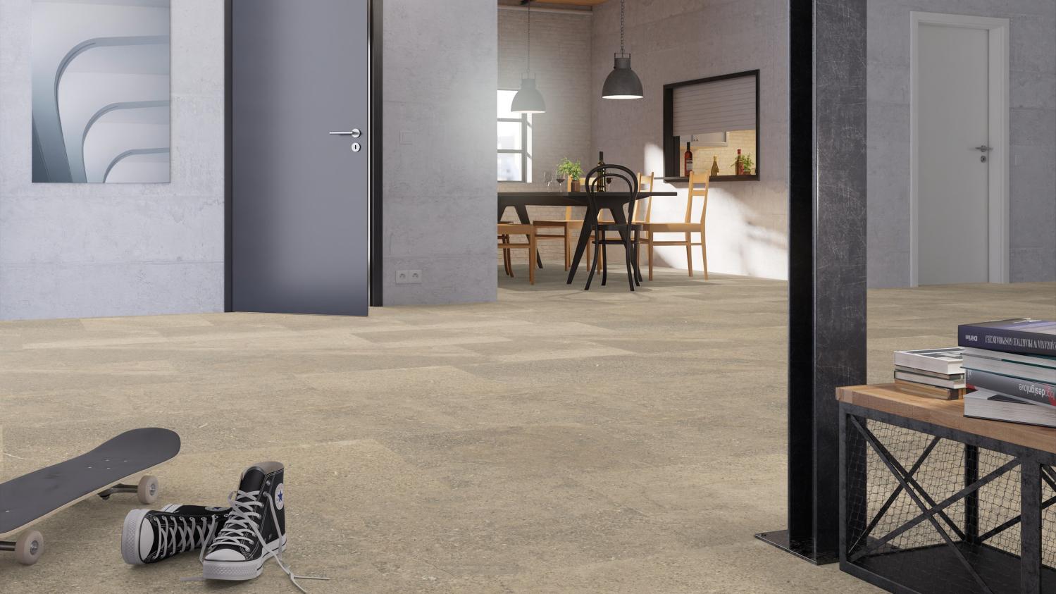 Podłoga klejona TARKETT w stylu skandynawskim, beżowy Rough Concrete Inspiracja 70