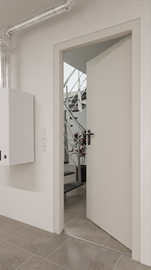 W przypadku pożaru model ten, przetestowany zgodnie z normą DIN 4102 , wytrzymuje działanie ognia i płomieni przez 90 minut. W skład zestawu do drzwi wewnętrznych wchodzi, oprócz skrzydła o grubości 62 mm i ościeżnicy blokowej, okrągła klamka przeciwpożarowa z tworzywa sztucznego, dwa zawiasy z łożyskami kulkowymi oraz samozamykacz górny.
