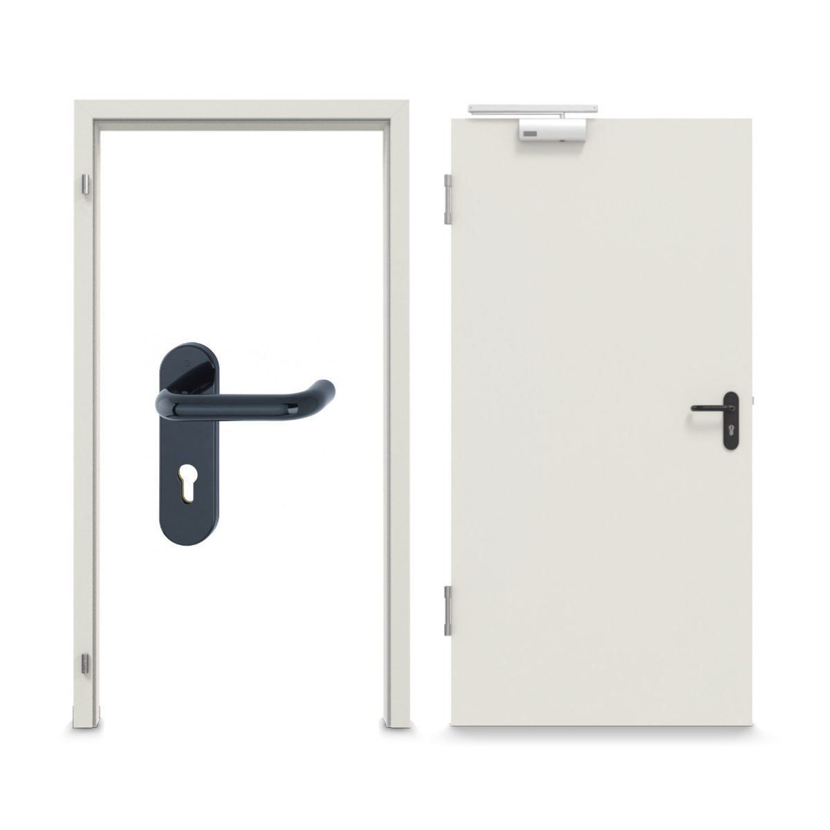 Kompletny zestaw do zabezpieczenia wnętrz przed ogniem: Zestaw drzwi wewnętrznych stalowych T90-1 FSA-62 z funkcją przeciwpożarową firmy Teckentrup charakteryzuje się odpornością na działanie płomieni i wysokich temperatur.