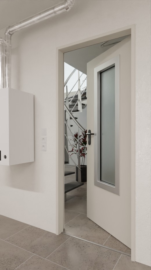 Model ten, przetestowany zgodnie z normą DIN 4102, zapewnia ochronę przed płomieniami i wysoką temperaturą przez 90 minut. Zestaw drzwi wewnętrznych zawiera oprócz skrzydła drzwiowego o grubości 62 mm oraz ościeżnicy narożnej i uzupełniającej okrągłą klamkę przeciwpożarową z tworzywa sztucznego, dwa zawiasy z łożyskami kulkowymi oraz samozamykacz górny.