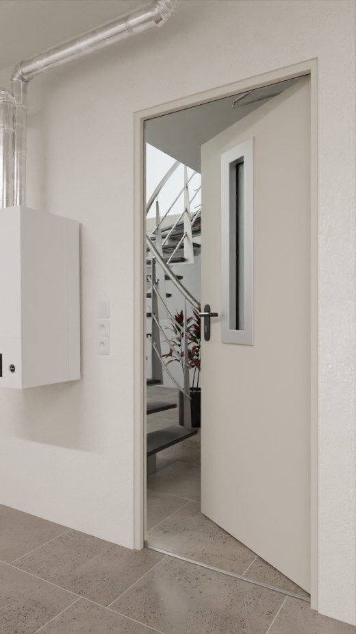 Możesz mieć pewność, że ochrona przeciwpożarowa zapewniająca 90 minut odporności ogniowej została przetestowana zgodnie z normą EN 16034 . Zestaw zawiera nie tylko ościeżnicę narożną i czarną klamkę przeciwpożarową, ale także dwa zawiasy konstrukcyjne i samozamykacz drzwiowy górny oraz zamek wpuszczany. Za pomocą pierścieni wyrównujących można regulować wysokość drzwi zewnętrznych.