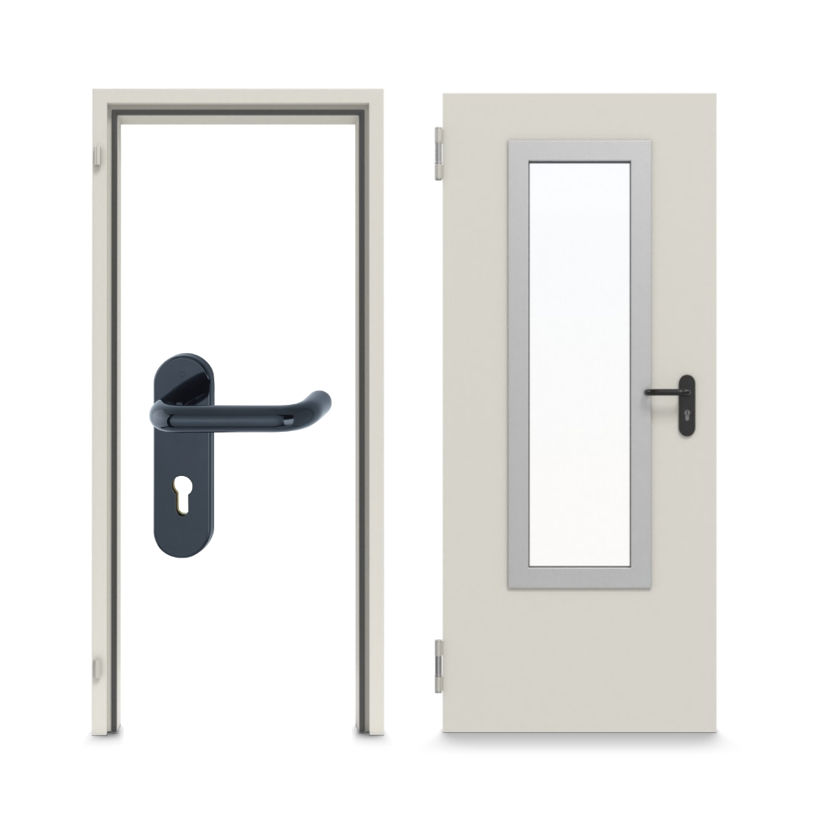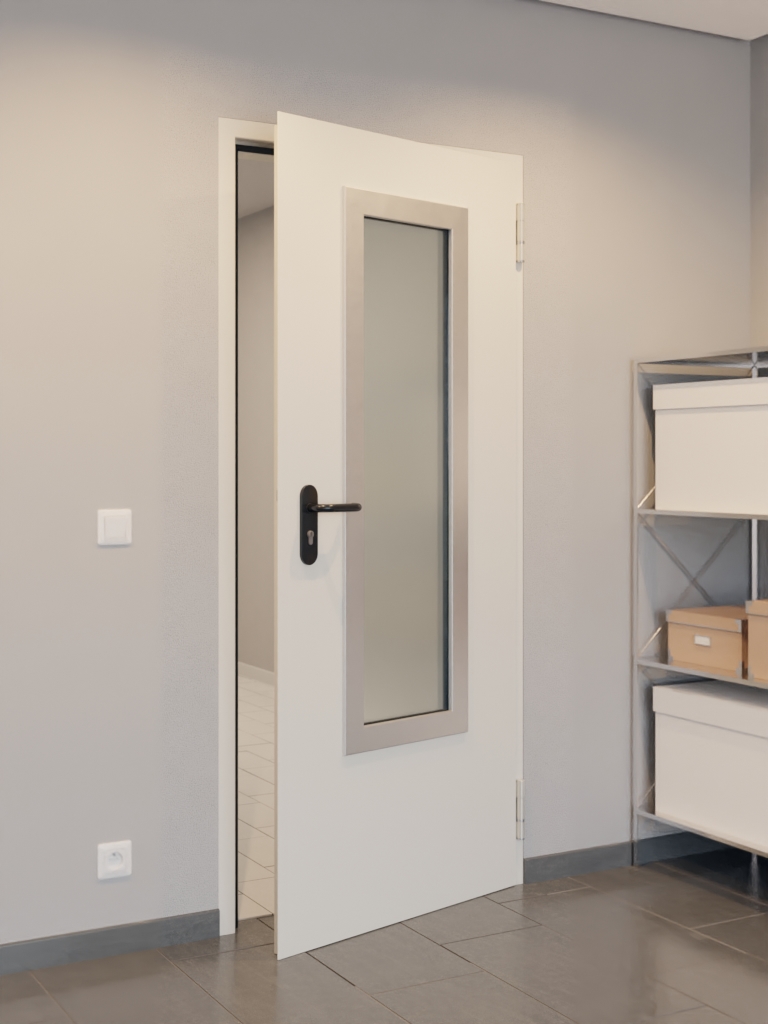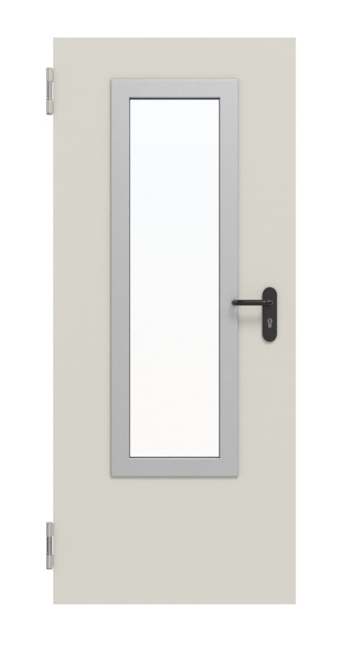 Dzięki cynkowaniu nie musisz martwić się korozją. Dotyczy to również oddziaływań mechanicznych wynikających z zastosowania szaro-białego podkładu. Prostokątne wycięciena szybę w skrzydle drzwiowym wpuszcza światło do pomieszczeń.