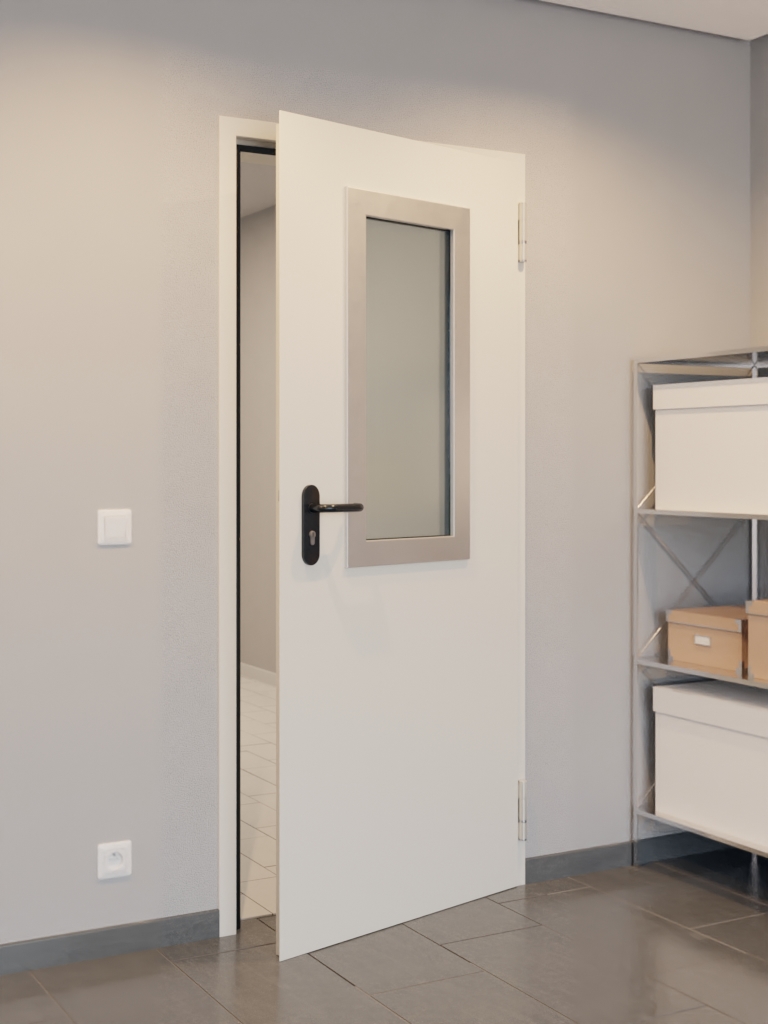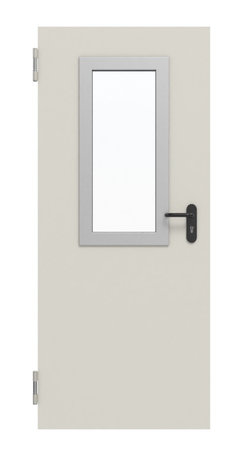 Model jest odporny na korozję dzięki ocynkowanej powierzchni. Odporność na oddziaływania mechaniczne zapewnia podkład w kolorze szaro-białym. Dzięki prostokątnemu przeszkleniu skrzydło drzwiowe nabiera przestronnego charakteru.