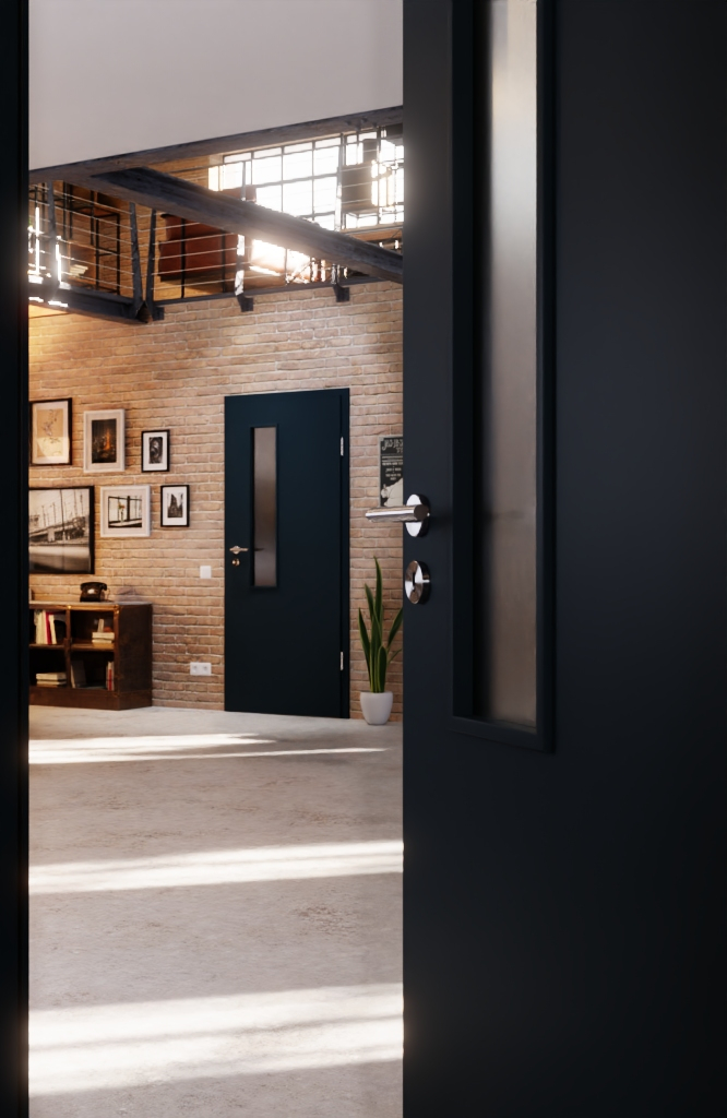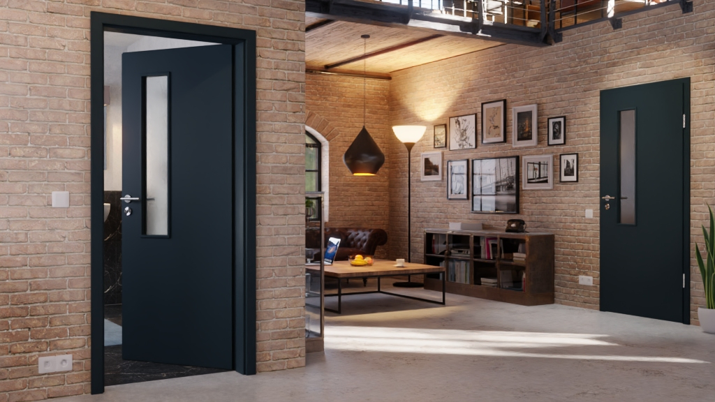 Matowa, matowa w dotyku powłoka zewnętrzna wyróżnia te drzwi w kolorze tytanowej szarości . Dzięki temu stanowi prosty element dekoracyjny w każdym pomieszczeniu mieszkalnym, a ponadto jest wytrzymały.