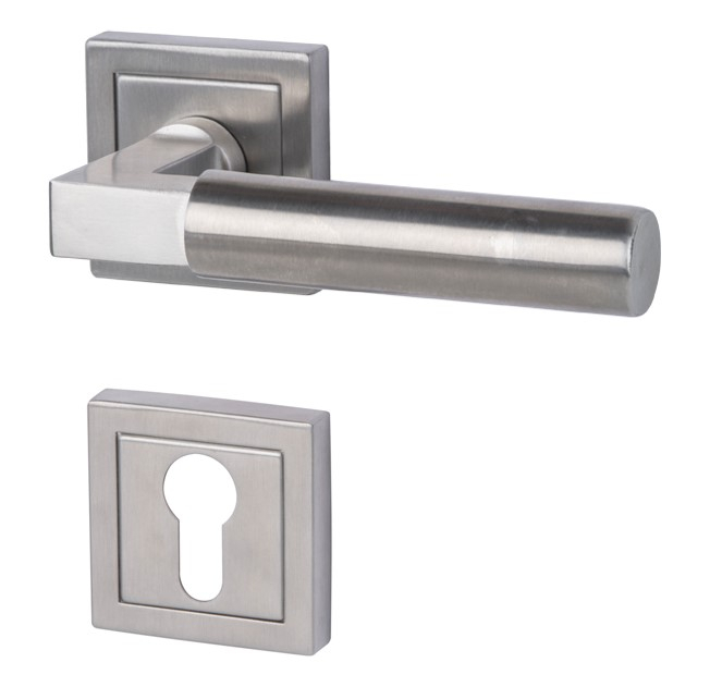 Dzięki cylindrycznemu kształtowi i matowej strukturze powierzchnia uchwytu dobrze leży w dłoni. W zakrzywieniu klamka przybiera kanciasty kształt, który doskonale współgra z kwadratowymi rozetami. Dzięki systemowi montażu Top Speed zestaw można szybko, łatwo i bez uszkodzeń powierzchni zamontować na skrzydle drzwi.