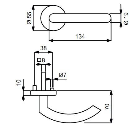 Model jest wykonany z rozetą zamka cylindrycznego. Został również przetestowany jako okucie przeciwpożarowe. W przypadku pożaru i nadmiernego ciepła, to okucie ma dłuższą trwałość.
