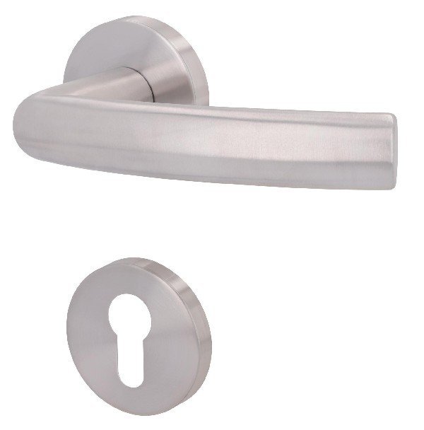Okrągłe rosety wykonane ze stali nierdzewnej są łatwe i szanują materiał przy montażu na skrzydle drzwi.