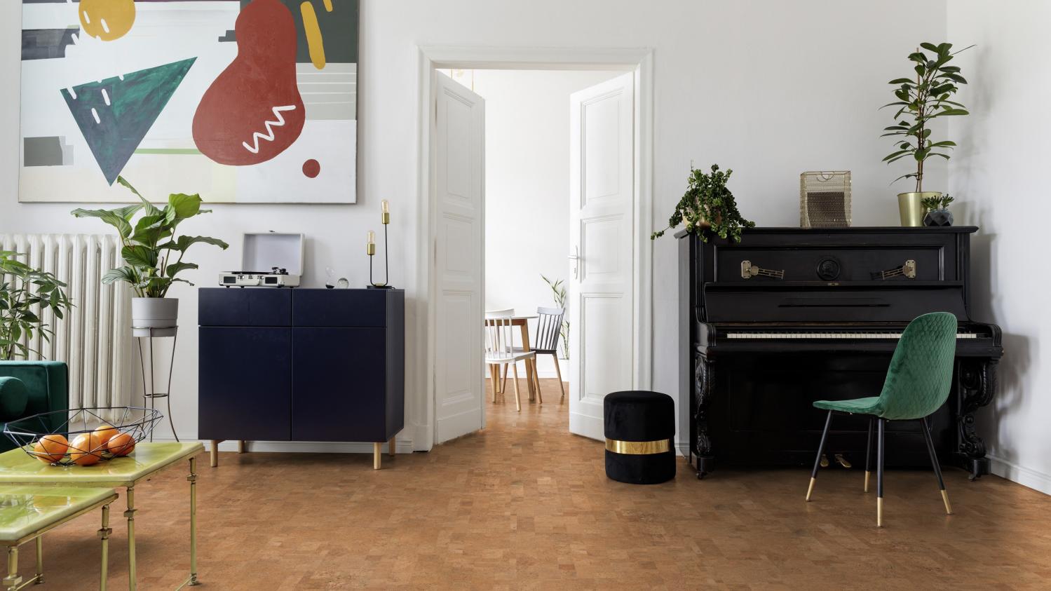 Indywidualny fornir jest wykonany ręcznie i podkreśla wyjątkową strukturę oraz harmonijny wygląd podłogi korkowej. Podłoga amortyzująca wstrząsy i zatrzymująca ciepło zapewnia komfort sprzyjający zdrowiu. Jest naturalnie elastyczny, dzięki czemu chroni stawy. Bieganie boso po korku jest również wyjątkowo przyjemne. Podłoga ma przyjemną temperaturę przez cały rok i przyczynia się do tworzenia przyjemnego klimatu w pomieszczeniu. Podłoga korkowa doskonale nadaje się do zapewnienia dobrej akustyki pomieszczenia dzięki swojej izolacji akustycznej.