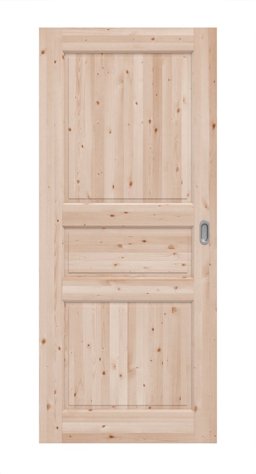 Skrzydło drzwiowe dzieli się na trzy różnej wielkości kasety, co zapewnia interesujący ogólny efekt. Nuda z pewnością nie zagości przy tych drzwiach. Dzięki profilowanej listwie drzwiowej w Twojej nieruchomości pojawią się przytulne akcenty. Sklejka warstwowa zapewnia odpowiednią stabilność. Lakierowana powierzchnia podkreśla naturalny styl wiejski i uwydatnia fakturę drewna. Możesz również wybrać nieprzetworzoną powierzchnię. Idealnie nadaje się do samodzielnego malowania drzwi przesuwnych w domu.
