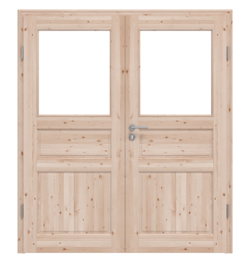 Skrzydła drzwi dzielą się na trzy części. W górnej części znajduje się przeszklenie, które zapewnia jasność w Twoim pomieszczeniu. Poniżej znajdują się dwa wypełnienia o różnej wielkości. Dzięki profilowanym fryzom drzwiowym w Twojej nieruchomości wprowadzone są przytulne akcenty. Lakierowana powierzchnia podkreśla naturalny styl wiejski i uwydatnia fakturę drewna. Możesz również wybrać nieprzetworzoną powierzchnię. Ta opcja idealnie nadaje się do samodzielnego malowania drzwi wewnętrznych w domu.
