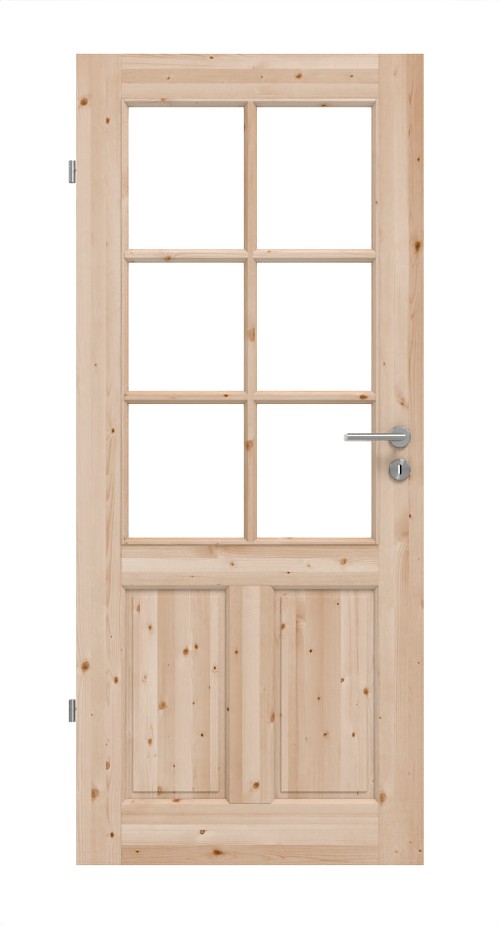 Bezbarwne lakierowanie powierzchni drewna sprawia, że drzwi wiejskie wyglądają szczególnie naturalnie i ciepło. Alternatywnie dostępna jest surowa powierzchnia, którą możesz samodzielnie pomalować, aby uzyskać swój indywidualny wygląd.