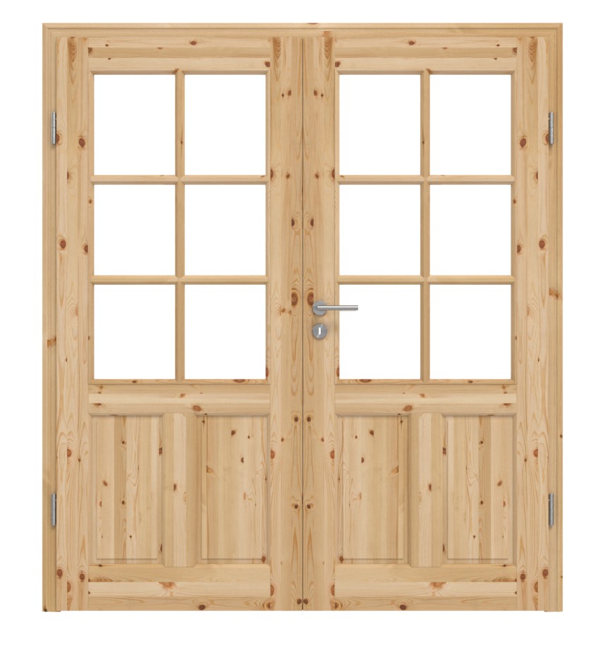 Podwójna moc drzwi: Drzwi podwójne z litego drewna typ 02-04-SP 6 z sosny od renomowanego producenta Kilsgaard tworzą rustykalną i przytulną atmosferę.