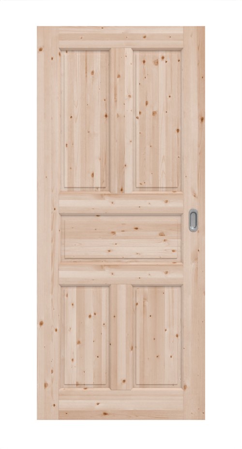 Skrzydło drzwiowe składa się z pięciu kaset, które są interesująco ułożone. Miłośnicy symetrycznych układów będą w pełni usatysfakcjonowani. Profilowany fryz drzwiowy nadaje drzwiom przesównym wiejski-rustykalny charakter. Szczególnie naturalny wygląd zapewnia bezbarwne lakierowanie, które nadaje powierzchni jedwabisty połysk. Można również zdecydować się na nieprzetworzoną powłokę. Dzięki temu powierzchnię można dostosować do własnych potrzeb w domu.