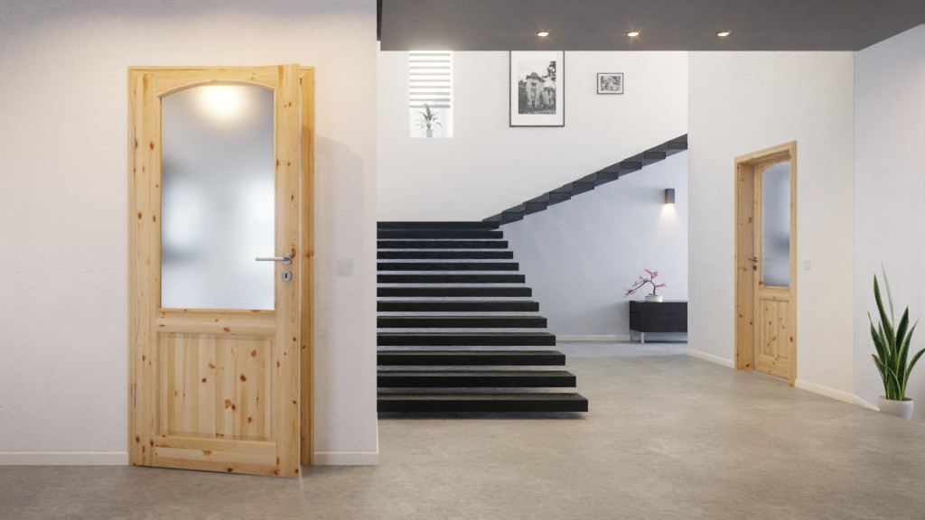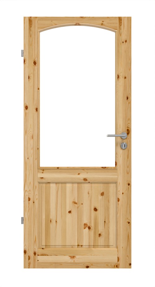 Górny świetlik zajmuje dużą część skrzydła drzwi i ma zaokrąglony łuk na górnym końcu. Wraz z nieco mniejszym wypełnieniem poniżej tworzy tradycyjny ogólny wygląd. Profilowany fryz drzwiowy podkreśla odpowiednie akcenty wiejskiego stylu.