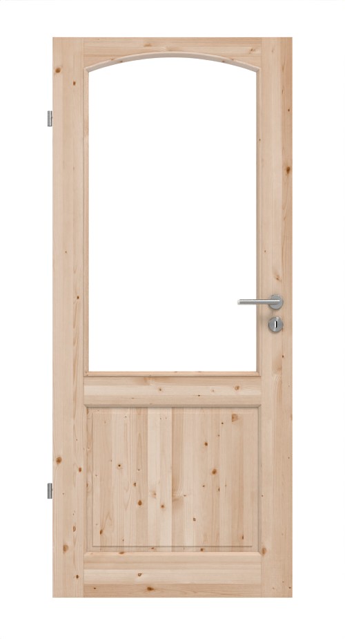 Górny otwór świetlny zajmuje dużą część skrzydła drzwiowego i ma zaokrąglony łuk na górnym końcu. Wraz z nieco mniejszym wypełnieniem poniżej tworzy tradycyjny ogólny wygląd. Fryz drzwiowy jest profilowany, co nadaje drzwiom wewnętrznym rustykalny design.