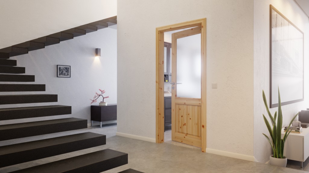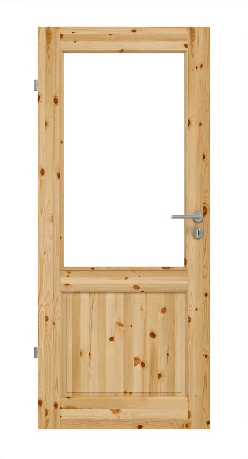 W górnej części skrzydła drzwi znajduje się duże przeszklenie, które wpuszcza światło do Twojego pomieszczenia. Poniżej znajduje się prostokątna wypełnienie. Profilowany fryz drzwiowy nadaje drzwiom wewnętrznym wiejski-rustykalny charakter.