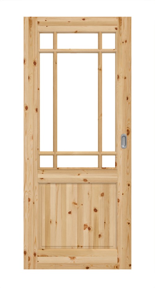 Dziewięcioczęściowa rama z drewnianymi szczeblami jest prawdziwą ozdobą, która wpuszcza światło do Twojego pomieszczenia. Skrzydło drzwiowe uzupełnia prostokątna wypełnienie. Dodatkowo posiada profilowany fryz drzwiowy, który znacząco przyczynia się do wiejskiego charakteru. Do tego dochodzi wycięcie świetlne z dyskretnymi szczeblami. Nieobrobiona powierzchnia idealnie nadaje się do nadania drzwiom pożądanego wyglądu za pomocą ulubionej farby. Twojej wyobraźni nie ma granic. Możesz również zdecydować się na bezbarwny lakier. Podkreśla on szczególnie dobrze usłojenie drewna.
