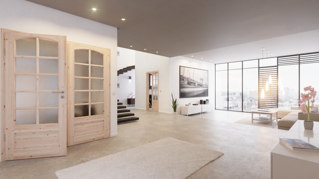 Drzwi podwójne są dzięki swojemu skrzydłu stałemu i skrzydłu ruchomemu wszechstronnie użyteczne. Jednocześnie ich rozmiar umożliwia łatwe wprowadzenie dużych mebli do pomieszczenia.