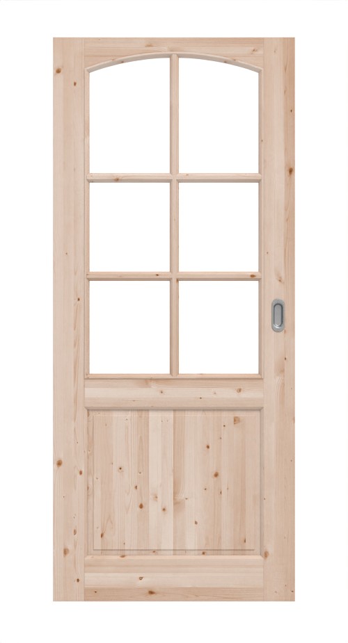 Ramka z przęsłami w górnej części skrzydła drzwi ożywia tradycyjny charakter. Pod nią znajduje się mniejsza wypełnienie, które podkreśla ten wygląd. Przy szerokości drzwi od 860 mm skrzydło drzwiowe ma 9 przęseł.