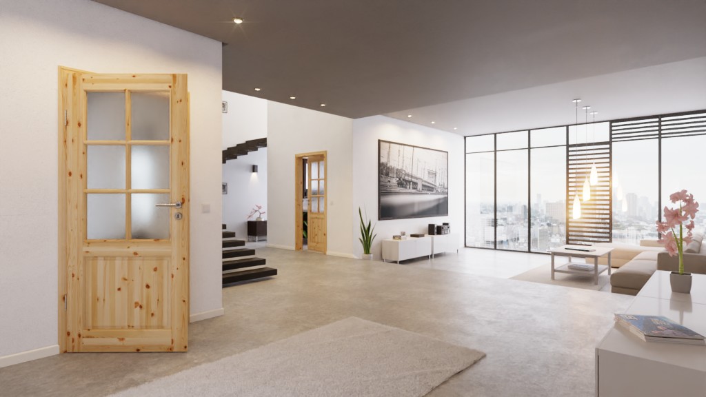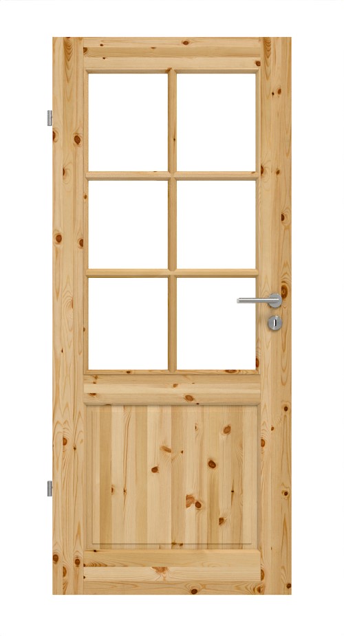 Lakierowana powierzchnia podkreśla naturalny produkt w stylu wiejskim i akcentuje fakturę drewna. Można również wybrać nieprzetworzoną powierzchnię. Idealnie nadaje się do samodzielnego malowania wewnętrznych drzwi w domu.