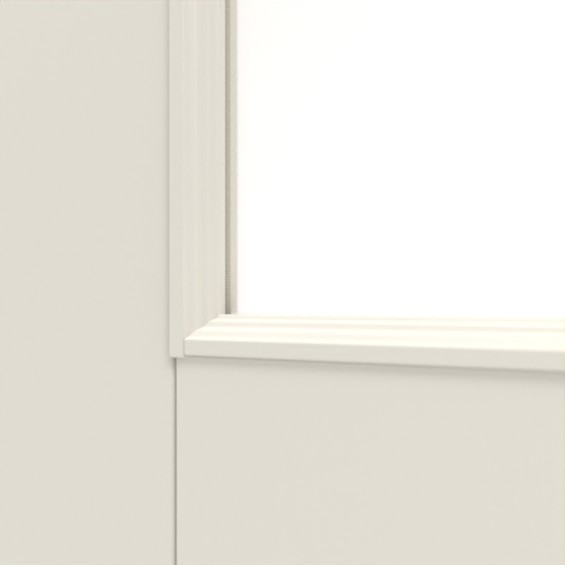 Oba prostokątne okna świetlne w górnej części drzwi są wyposażone w małe szprosy. Dzięki temu uzyskuje się elegancki wygląd w stylu starych budynków, który jest dodatkowo wzmocniony przez znajdujące się poniżej prostokątne reliefy.