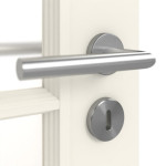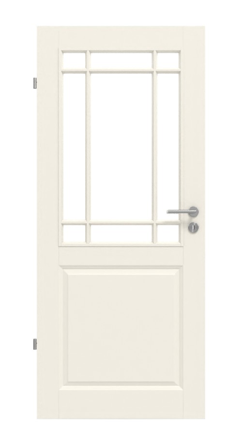 Najważniejszym elementem tego klasycznego stylu secesyjnego jest górne okno widokowe, ozdobione wyrazistymi elementami szklanymi w tradycyjnej formie. Pozostała powierzchnia drzwi jest przetykana prostokątnym reliefem, co tworzy skomplikowany design, który nadaje każdemu pomieszczeniu wyjątkowy charakter.