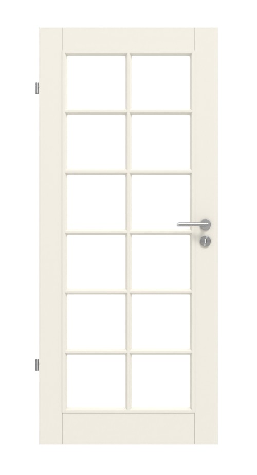 Powłoka lakiernicza w RAL 9010 lub RAL 9016 zapewnia trwałość koloru. Stabilna płyta wiórowa wewnątrz drzwi czyni je solidnym towarzyszem. W zależności od Twoich życzeń i wyobrażeń, krawędzie drzwi mogą być zaokrąglone lub kanciaste.