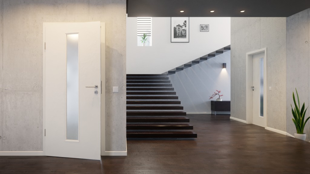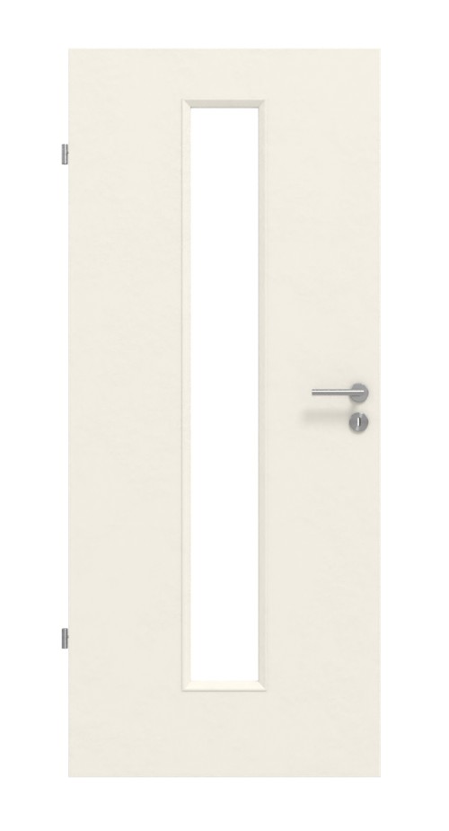 Przeszklenie znajduje się tutaj pośrodku białego i równo zlicowanego skrzydła drzwiowego, co nadaje mu czysty, nowoczesny wygląd. Nadaje się on szczególnie do ponadczasowych koncepcji aranżacji wnętrz.