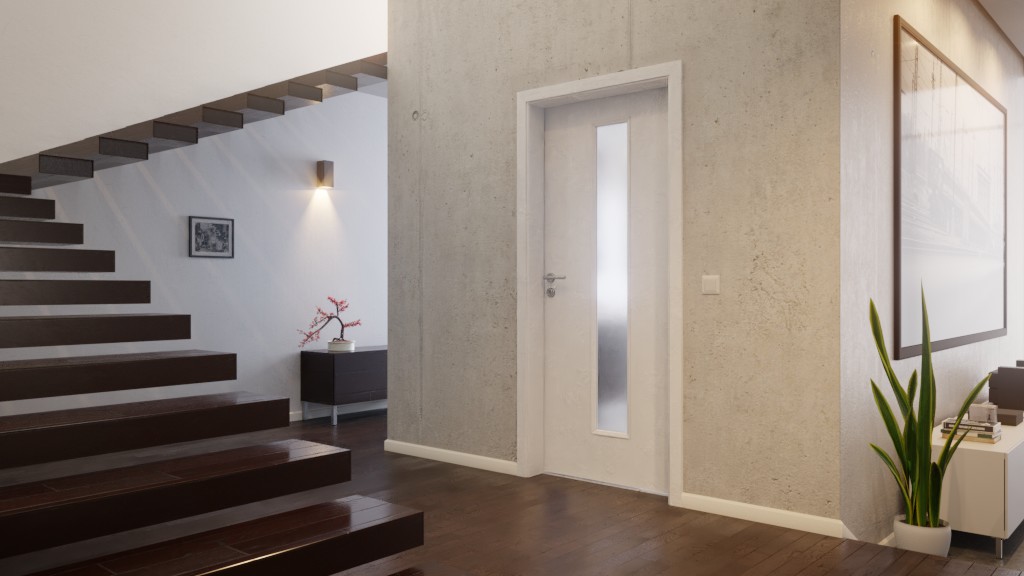 W środkowej części skrzydła drzwiowego znajduje się przeszklenie, które wpuszcza światło do pomieszczenia. Jednocześnie dyskretnie upiększa całe drzwi.