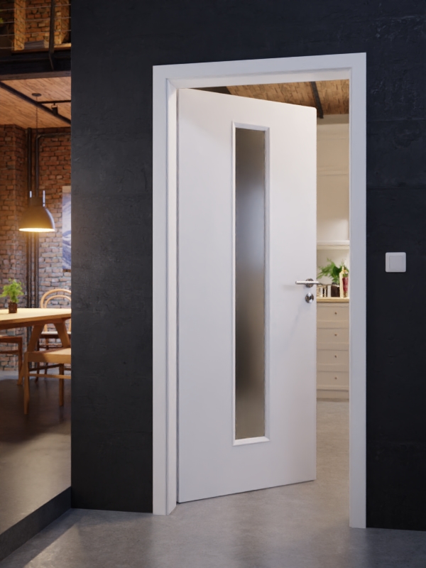 W przypadku tego skrzydła drzwiowego jasna szarość jest przyjemnie przełamana przez centralne przeszklenie . W ten sposób powstaje minimalistyczny, ale jednocześnie bardzo modny wygląd.