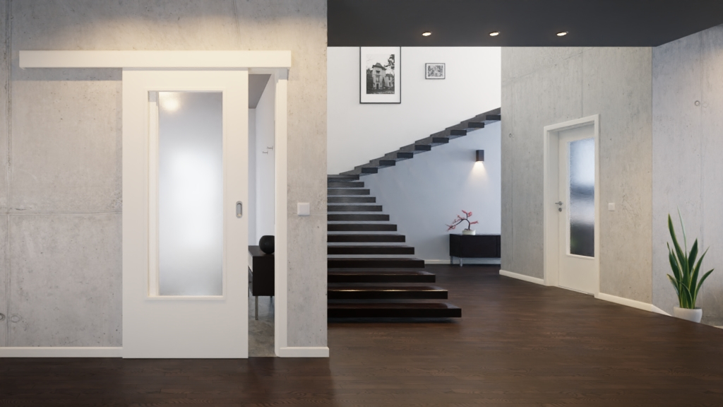 Oszczędzająca miejsce drzwi przesuwne CPL marki Kilsgaard, które są niezwykle odporne: