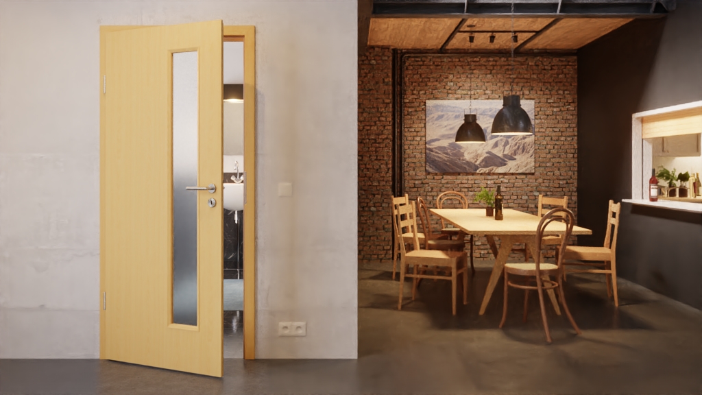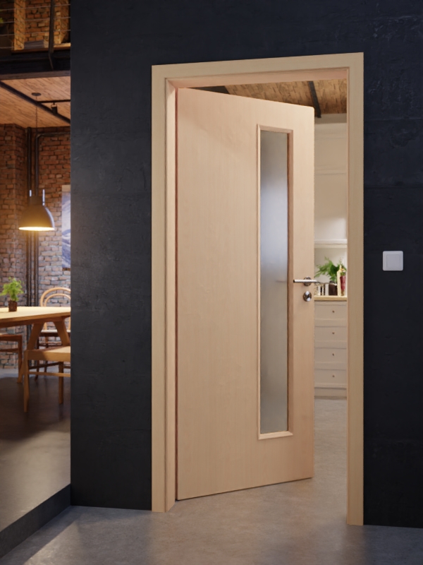 Wszystko, co potrzebujesz do ponadczasowego urządzania wnętrz: typowy bukowy kolor i delikatne usłojenie są uzupełnione przez boczne przeszklenie w tym skrzydle drzwiowym.