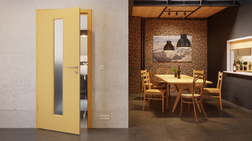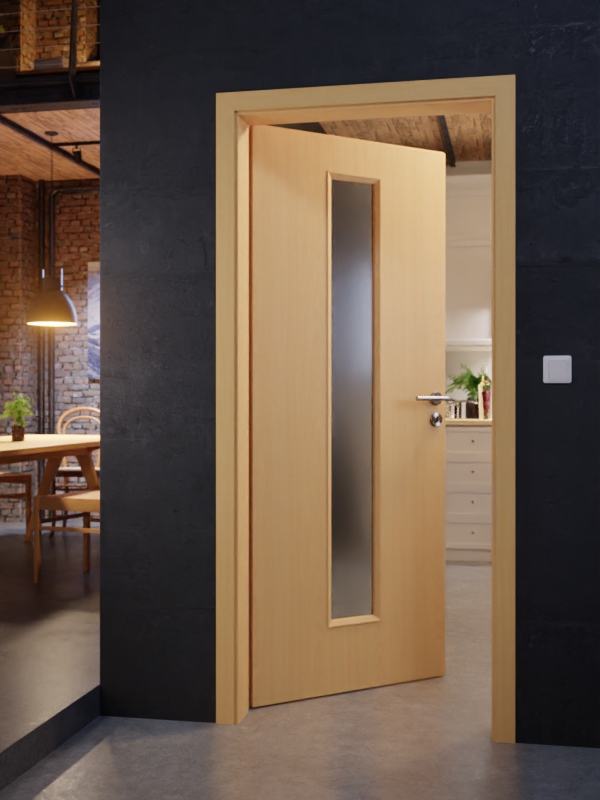 Te drzwi fornirowane są prawdziwą ozdobą i zachwycają prostokątnym przeszkleniem. Różne odcienie buku sprawiają, że Twój dom wydaje się ciepły i przytulny.